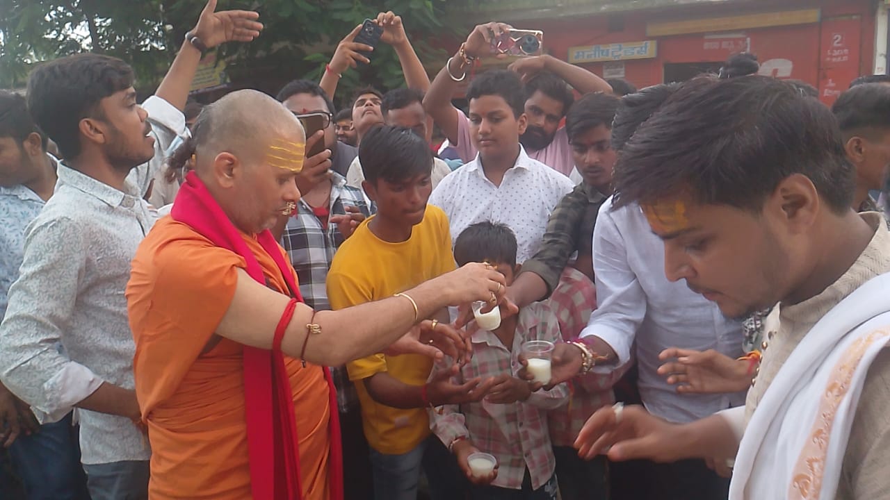 आज प्रातः 7 बजे सूर्य पूजन के पश्चात् काशीस्थ दण्डी संन्यासियों की समर्चना का कार्यक्रम हुआ